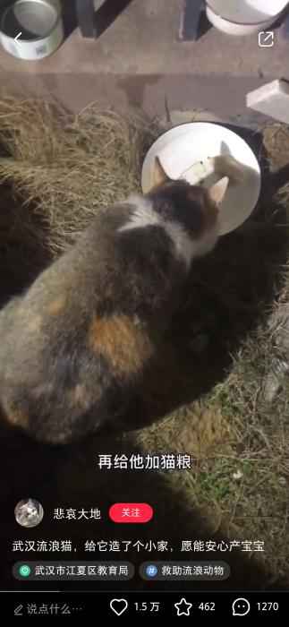 “悲哀大地”是武汉市江夏区的一位居民,自己养了六只猫,平时就会不时投喂小区附近的流浪猫。